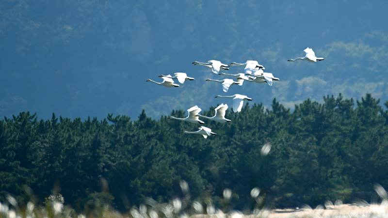Miasto Rongcheng, w prowincji Shandong, wita zimujące łabędzie