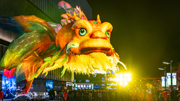Turyści oglądają lampiony świętując Nowy Rok – po raz pierwszy pokazano „Lampion ogromnego legendarnego żółwa(Ao yu)”