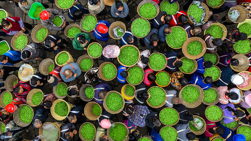 Wczesnowiosenny targ herbaciany w Chinach
