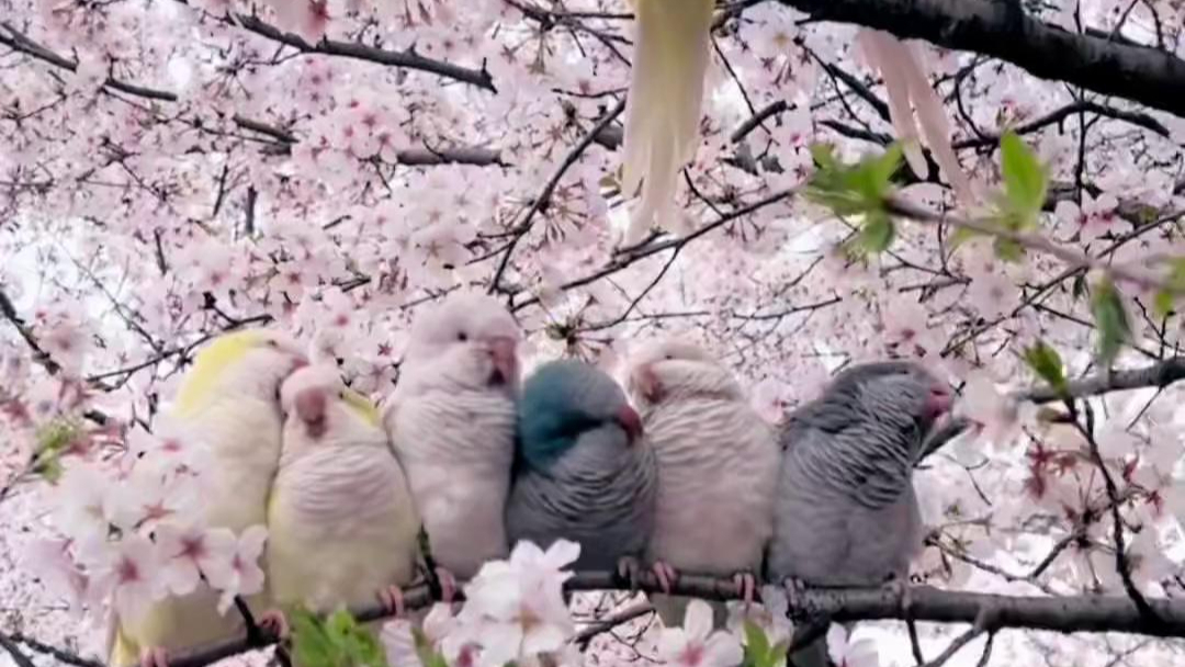 Ptaki gnieżdżą się na gałęziach wiśni