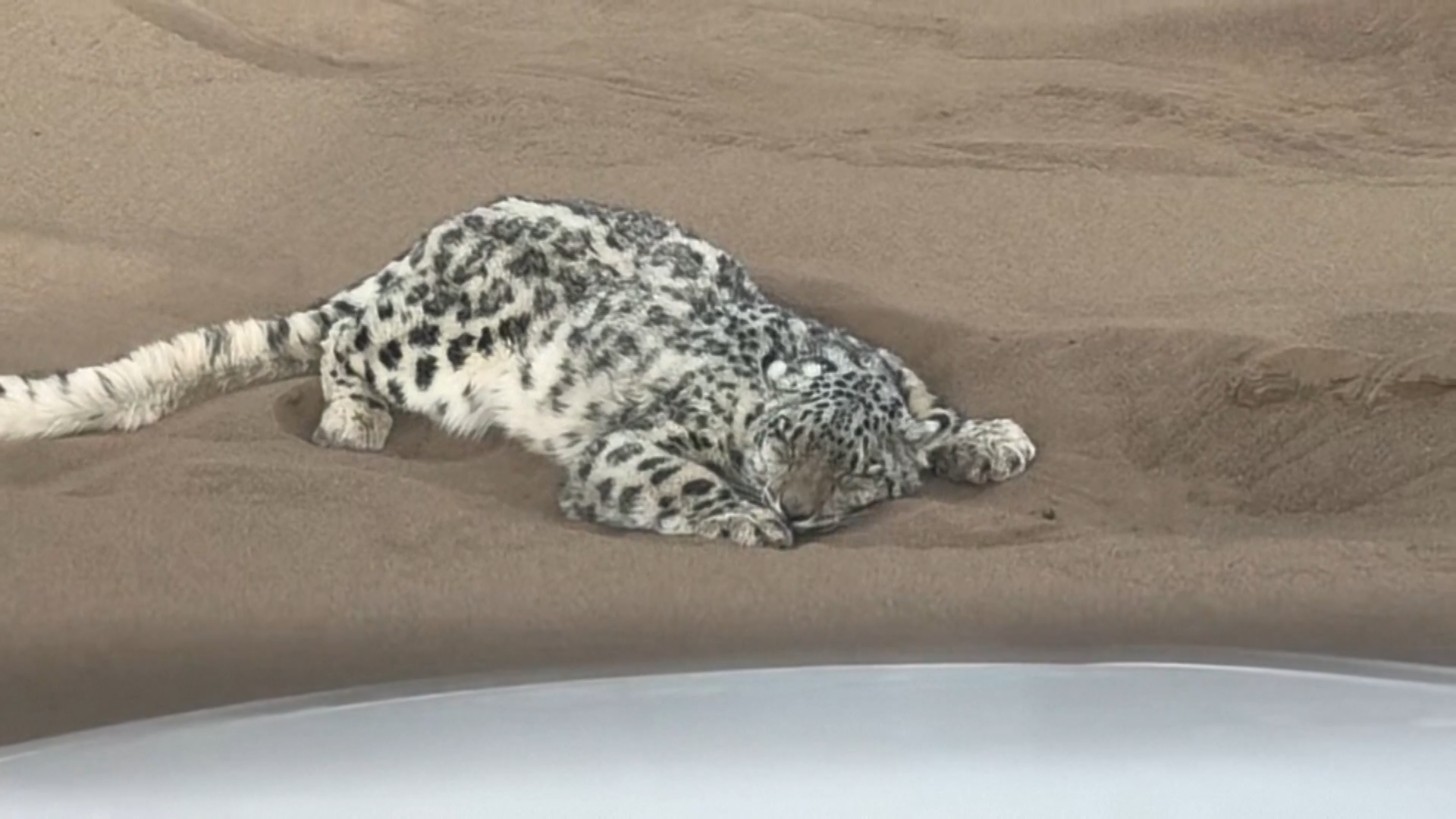 Lampart śnieżny, który zabłądził na pustynię, został uratowany
