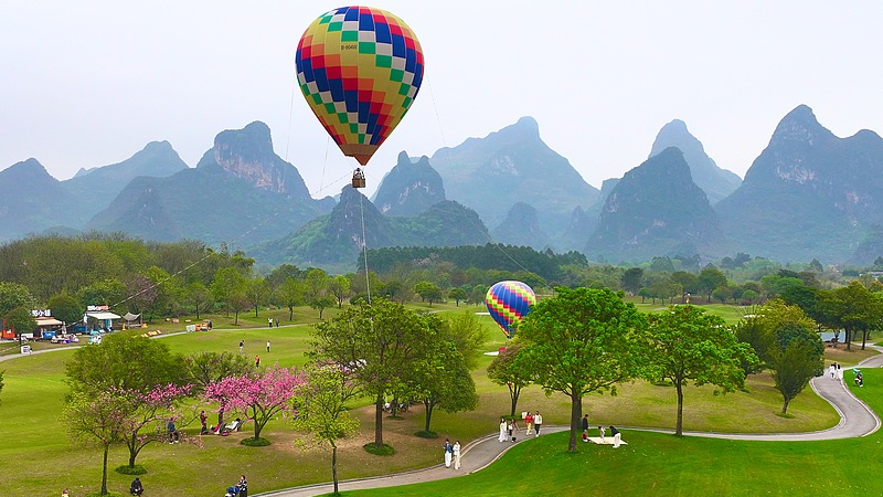 Guilin, Guangxi: wiosenne krajobrazy w rejonie turystycznym Guihai Qinglan