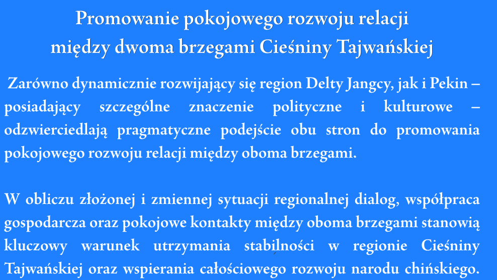 Promowanie pokojowego rozwoju relacji między dwoma brzegami Cieśniny Tajwańskiej